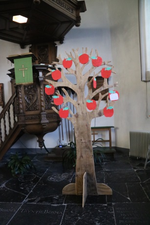 Zondag 18 september zijn we het kerkelijk seizoen gestart met een gezamenlijke startzondag in Kuinre. Thema van deze dienst: Deel je leven. De kerkgangers kregen per gezin/echtpaar een kaartje waarop ze mochten schrijven wat ze willen delen. Deze kaartjes werden later weer uitgedeeld en zo lieten we zien dat we dichtbij op een makkelijke manier al dingen kunnen delen. Het is overigens best spannend door wie je gebeld wordt. Sikke Siepel heeft een prachtige boom gemaakt waar alle groepen binnen de gemeente een appel in mochten hangen met de tekst erop wat zij als groep delen binnen de gemeente. Mooi dat deze boom zoveel vruchten draagt. Vruchten die gevoed worden vanuit de stam, die God verbeeld. Dat wij alleen een stukje van deze vruchten mogen zijn. Zo kunnen we samen starten aan een nieuw seizoen en proberen nieuw zaad te laten ontkiemen.
